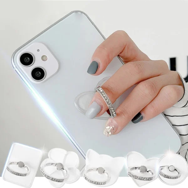 - Anillo transparente para sostener el teléfono con diamante, diseñado para sujetar el teléfono de forma segura y cómoda.