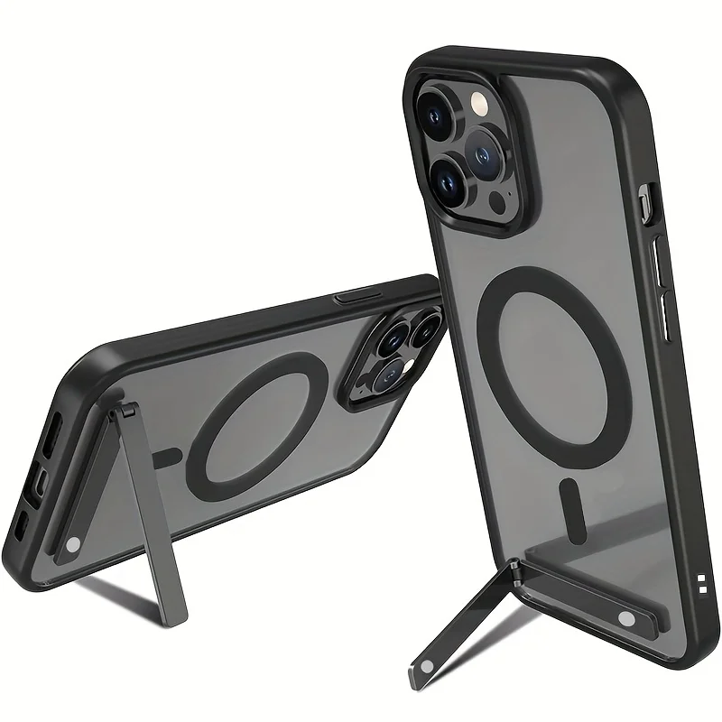 Estuche magnético 2 en 1 con soporte metálico para iPhone 15 Pro Max 14 Plus 13 11 12 Mini: Funda delgada con soporte para teléfono móvil